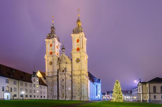 Das Viertel im Herzen der Altstadt rund um die zweitürmigen Stiftskirche St. Gallus und Otmar (Ersterer, ein irischer Mönch, soll 612 dort eine Einsiedelei gegründet haben, aus der die Stadt entstand) ist Weltkulturerbe. Die Kathedrale, Wahrzeichen der Stadt, ist ein prachtvoller Barockbau aus dem 18.Jh.