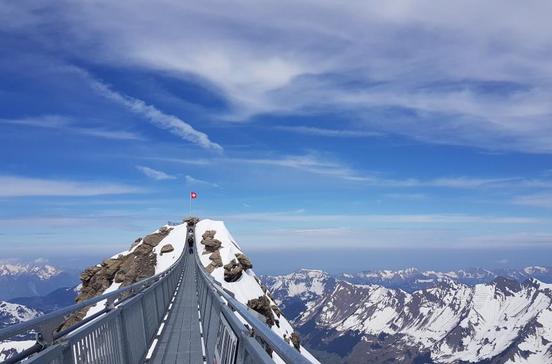 Von einem Berggipfel zum anderen laufen, und das (fast) durch die Luft – kaum zu glauben? Aber wahr: Der Peak Walk ist eine 107 m lange und nur 80 cm breite Hängebrücke für Nervenstarke – belohnt für deinen Mut wirst du mit einem fantastischen Panorama: Mont Blanc, Matterhorn, Eiger, Mönch und Jungfrau sind alle da.