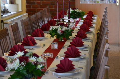 Im Restaurant werden regionale und internationale Spezialitäten serviert. Genießen Sie einen Grillabend im Garten oder entspannen Sie am Teich neben dem Wintergarten.