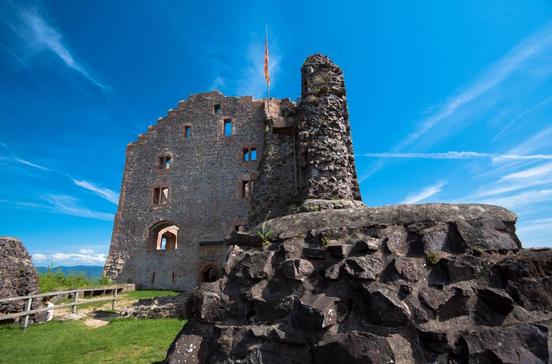 Über Seelbach thront die Burgruine Hohengeroldseck, älteste Burg im Schuttertal.