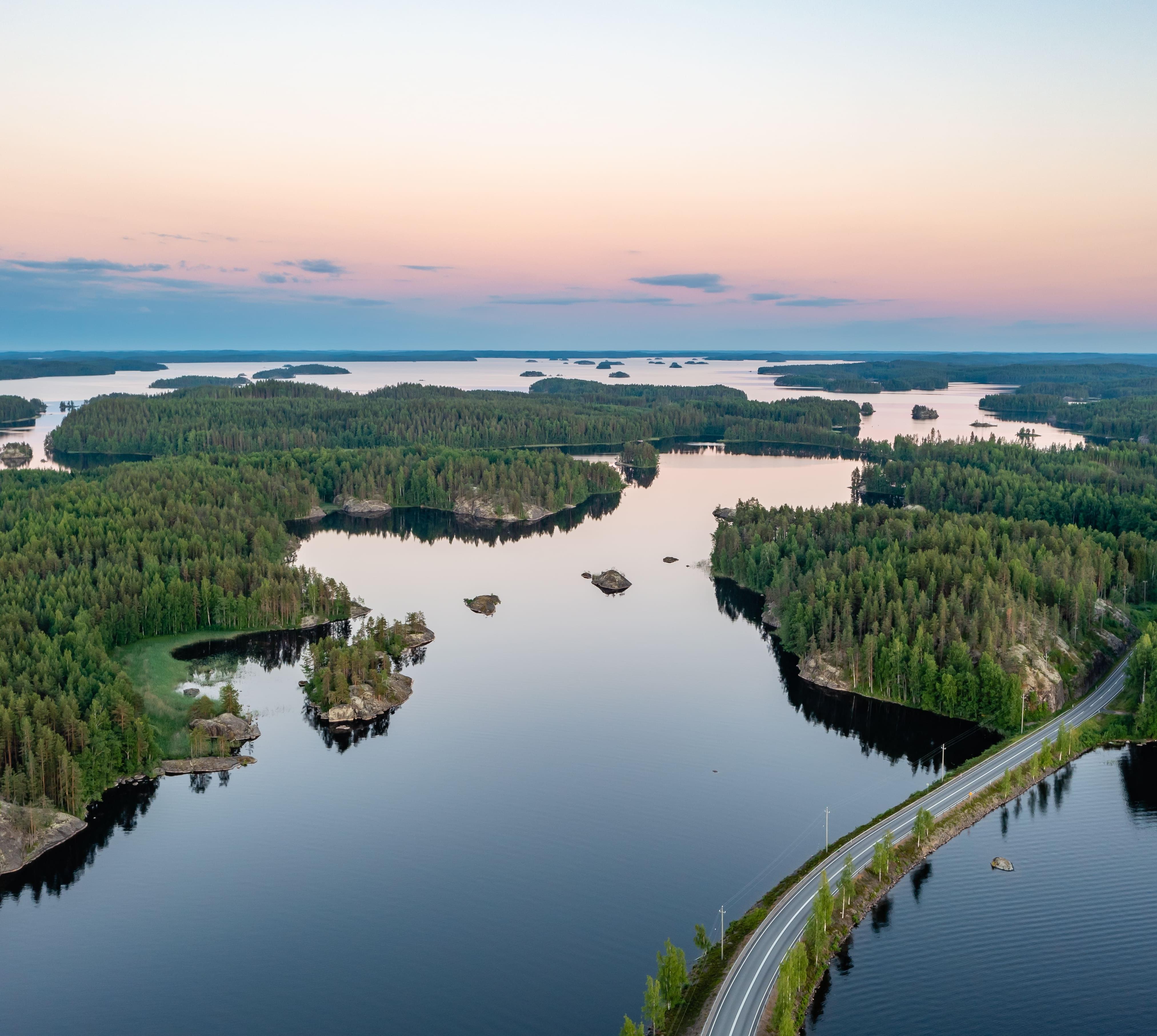 Seinen Ruf vom „Land der tausend Seen“ hat Finnland den rund 40 000 Gewässern der finnischen Seenplatte zu verdanken. Ein Boot ist hier oft nützlicher als ein Auto. An manchen Stellen fühlt man sich vom Wasser umzingelt, wie auf dem schmalen Höhenrücken der Nationallandschaft Punkaharju.