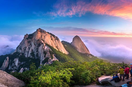 Rund um den 836 m hohen Baegundae- und den 799 m hohen Mangyeongbong-Gipfel warten dichte Wälder, wilde weiße Granitfelsen, jede Menge Bergbäche, mehr als hundert buddhistische Tempel und wunderbare Aussichten.