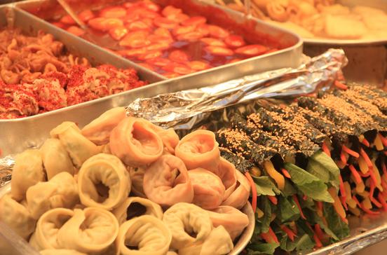 Berühmt ist dieser Markt für seine Imbissstände. Hier gibt es außerdem Stoffe und die traditionellen koreanischen Hanbok-Kleider.