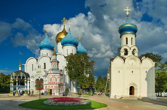 Erstaunlicherweise gibt es in unmittelbarer Nähe zur Millionenstadt noch Fleckchen von ländlicher Ruhe und Abgeschiedenheit. Wallfahrtsort und Ausflugsziel vor den Toren Moskaus ist das Dreifaltigkeits-Sergios-Kloster mit seinen Zwiebeltürmen in Sergijew Possad, früher auch Sagorsk genannt. Das Kloster ist bis heute das wichtigste geistliche Zentrum Russlands, vergleichbar mit dem Vatikan, obwohl die russisch-orthodoxe Kirche weniger zentralistisch aufgebaut ist. Seine blauen und goldenen Zwiebeltürme sind bereits aus großer Ferne zu sehen. Wenn man schließlich hinter den hohen Festungsmauern über den großen Klosterhof läuft, trifft man Schüler des Priesterseminars und der Akademie der russisch-orthodoxen Kirche in ihren schwarzen Soutanen. Zahlreiche Pilger drängen sich in der kleinen Dreifaltigkeitskathedrale von 1422 mit ihren goldenen Kuppeln und dem Grab des Heiligen Sergios. Babuschkas füllen sich in der Brunnenkapelle wundertätiges Wasser ab. Bis heute ist Sergijew Possad das erste und wichtigste unter den fünf Lawra- oder Einsiedlerklöstern der russisch-orthodoxen Kirche. Das symbolisiert auch die größte Kirchenglocke der Welt, welche rund 72 t schwer und 4,5 m hoch ist. Sie wurde 2004 neu auf dem 87 m hohen Glockenturm angebracht - der bereits 1761 errichtet worden war. Etwa um 1340 hatte der Bojarensohn Sergios von Radonesch sich in den einsamen Wäldern nördlich von Moskau eine Mönchsklause und eine kleine Holzkapelle errichtet. Schnell scharten sich Anhänger um ihn. Von hier aus feuerte Sergios den Widerstand gegen die Goldene Horde der Mongolen an und ließ das Kloster befestigen. In der "Zeit der Wirren" um 1600 konnten polnische Truppen zwar Moskau erobern, nicht jedoch das Wehrkloster einnehmen. Eine 16 Monate lange Belagerung scheiterte. Die Volkshelden Kusma Minin und Dmitri Poscharski, deren Denkmal auf dem Roten Platz steht, konnten von der Klosterstadt aus schließlich die Befreiung der Stadt organisieren. Für die Zaren der Romanow-Dynastie, die danach auf den russischen Thron gehoben wurden, war das Kloster seitdem ein wichtiger Wallfahrtsort. Der junge Zar Peter der Große fand hier 1688 Zuflucht vor der aufständischen Strelitzengarde. 1919 wurde das Kloster aufgelöst, 1946 aber von Stalin an die Kirche zurückgegeben. Von 1946 bis 1988 war es im Anschluss Sitz des Patriarchen der russisch-orthodoxen Kirche, bevor dieser erst nach Peredelkino ging und dann schließlich nach Moskau zurückkehrte. Noch heute beeindruckend ist die 12 m hohe, 6 m dicke und 1,5 km lange weiße Festungsmauer, die von den blauen, mit golden Sternen geschmückten Zwiebelkuppeln der Mariä-Entschlafungs-Kathedrale überragt wird, die Iwan der Schreckliche 1559 nach Moskauer Vorbild erbauen ließ. Hier liegt der unglückliche Zar Boris Godunow begraben. Kleiner, aber noch älter und bedeutsamer ist die Dreifaltigkeitskathedrale mit dem Grab des Klostergründers Sergios. Das Original der berühmten Dreifaltigkeitsikone des berühmten Malers Andrej Rubljow, der angeblich ein Schüler von Sergios gewesen sein soll, wird allerdings heute nicht mehr hier, sondern in der Tretjakow-Galerie im Zentrum Moskaus ausgestellt. In Sergijew Possad kann nur eine Kopie des bedeutenden Werks besichtigt werden. Priesterseminar und Akademie sind im ruhigen hinteren Bereich des Klosters im Rasthof der Zaren aus dem 17.Jh. untergebracht. Das Refektorium des Klosters mit einem 70 m langen Saal ist ein Geschenk Peters des Großen. Auf dem Gelände befindet sich auch ein sehr informatives Museum der Klostergeschichte. Souvenirs können überall gekauft werden.