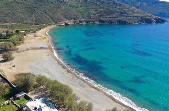 Der lange Sand-Kies-Strand mit einigen Tamarisken vermittelt das echte Sérifos-Gefühl: Er breitet sich unmittelbar vor einer ehemaligen Bergarbeitersiedlung aus.