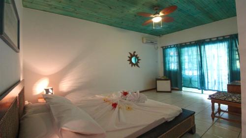 Die geräumigen Wohneinheiten sind Holzchalets mit Aluminiumdächern. Jede Wohneinheit lockt mit Aussicht auf den Indischen Ozean oder die Gärten. Die Zimmer der Unterkunft La Digue verfügen zudem über einen Balkon oder eine Terrasse mit Aussicht auf den weißen Sandstrand.