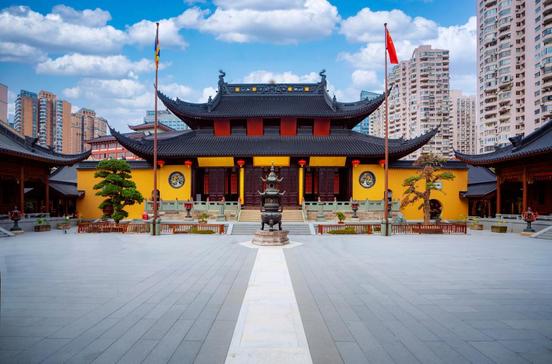 Sehr alt ist es nicht, Shanghais meistbesuchtes Buddhaheiligtum, aber gut erhalten, voll religiösen Lebens und reich ausgestattet mit Bildwerken. Zwei davon - die schönsten - gaben ihm den Namen und stehen gleichzeitig am Anfang seiner Gründungsgeschichte: Ein chinesischer Mönch brachte die Jadebuddhas um 1880 aus Birma (dem heutigen Myanmar) mit, dazu Geldmittel, die Auslandschinesen für den Bau eines Tempels gespendet hatten. Jener erste Tempel verfiel bald, der heutige entstand an neuer Stelle in den Jahren 1918-28.Gegenüber einer prächtigen Geistermauer steht die Eingangshalle direkt an der Straße. In der Kulturrevolution über die Türflügel geklebte Mao-Bildnisse verhinderten damals die Zerstörung des Tempels: Die Rotgardisten hätten Mao beim Eindringen zerreißen müssen. In der Mitte der Halle (nur von hinten zu betreten) sitzt der lachende Dickbauchbuddha, an den Seiten drohen die furchterregenden Himmelskönige allem Bösen und mahnen Läuterung an. Will man lebendige Religiosität erleben, dann kommt man am Vollmond- oder am Neumondtag: der 1.und der 15.des Mondmonats sind traditionelle Daten für religiöse Feiern und Opfer an die Götter, die Buddhas und Bodhisattvas.