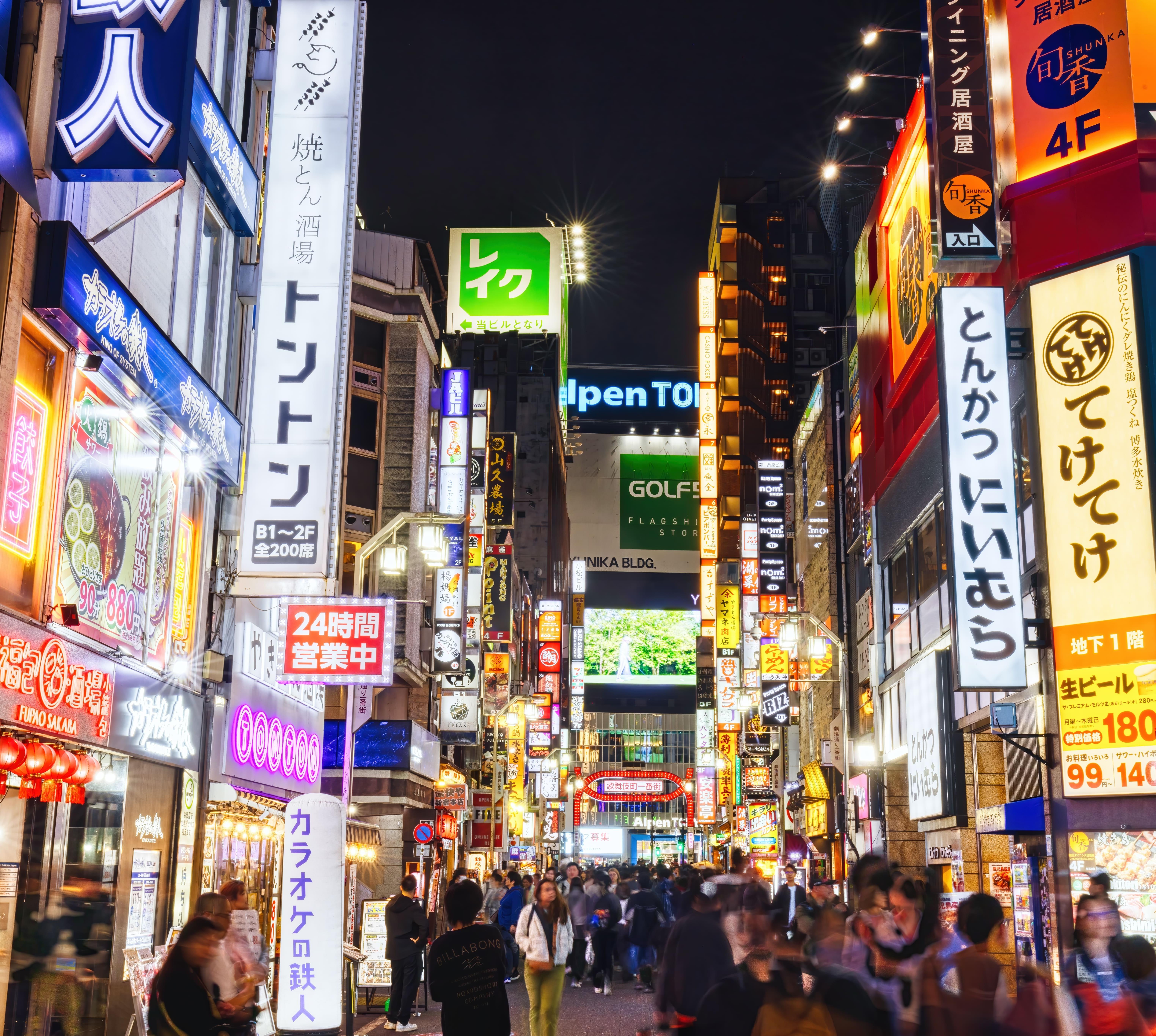 Ein Viertel mit vielen Facetten: Shinjuku steht für unbegrenzten Einkaufsbummel durch Kaufhäuser, Dutyfreeläden, trendige Boutiquen oder die unterirdischen Passagen des labyrinthischen Bahnhofs Shinjuku.