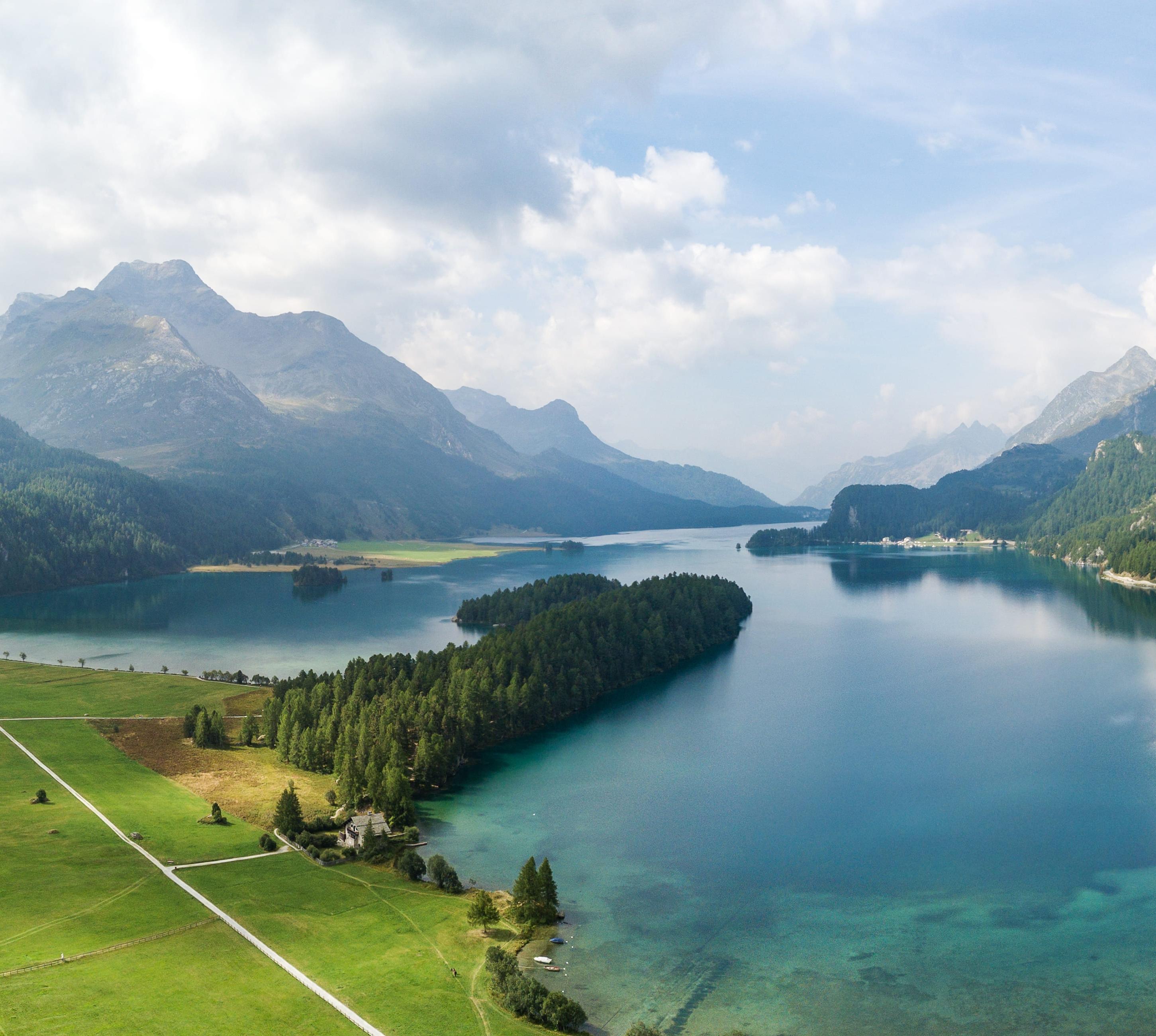 Landschaftliche HighlightsDer Silvaplanersee befindet sich im Süden der Ostschweiz, wenige Kilometer südwestlich von St. Moritz. Der See hat eine Fläche von 3,1 km², eine Länge von 3,1 km und ist an der breitesten Stelle 1,4 km breit. Der See ist aufgrund seiner günstigen Windverhältnisse vor allem bei Kite- und Windsurfern beliebt.