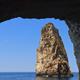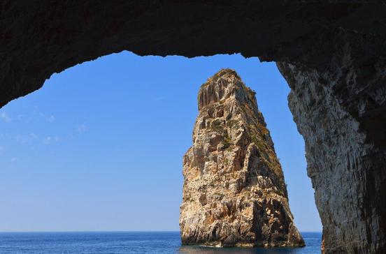 Im Süden begrenzt eine aus dem Meer aufragende Felsnadel, der Orthólithos, die Bucht. Dadurch erhält Ágios Górdis sein einzigartiges Gesicht.