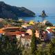 Korfus beliebtestes Ausflugsziel ist ein kleines Schloss hoch über der Ostküste inmitten eines großartigen Parks mit vielen Skulpturen. Kaiserin Elisabeth von Österreich (1837-98), besser bekannt als Sisi, ließ es erbauen und kam ab 1891 bis zu ihrer Ermordung in Genf mehrfach hierher. 1907 kaufte der deutsche Kaiser Wilhelm II. das Anwesen und verbrachte dort alljährlich die Osterzeit. Der Lieblingsheld beider Majestäten war der antike, sagenhafte Achill. Beide setzten ihm im Schlosspark ganz unterschiedliche Denkmäler: Die melancholische Österreicherin liebte den "Sterbenden Achill" mit einem Pfeil in der Ferse, der Preuße schätzte den "Siegreichen Achill" mit Schild und Lanze. Auf der oberen Terrasse des Schlossparks stehen weitere Statuen, die die Musen verkörpern, und viele Büsten antiker Philosophen. Im Innern des Achíllion ist das Erdgeschoss mit einem prächtig ausgemalten Treppenhaus, der Schlosskapelle und mehreren Räumen, in denen Möbel, Gemälde und andere Dinge an die kaiserlichen Hoheiten erinnern, zu besichtigen. Besonders kurios: der Schreibtischstuhl Kaiser Wilhelms in Gestalt eines Pferdesattels, der wie ein Schaukelpferd schwingt.