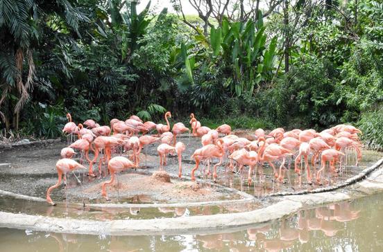Der wunderschöne Singapurer Zoo von 1973 wurde als "Open Zoo" konzipiert - das heißt, dass die meisten Tiere in großen, offenen Gehegen gehalten werden. Wo immer es geht, wurde auf Gitter verzichtet - meist trennen Wassergräben Besucher und Besuchte. Die Nightsafari bietet einen besonderen Höhepunkt, den sich kein Singapur-Besucher entgehen lassen sollte. Mehrfach preisgekrönt sind sowohl Zoo als auch Nachtsafari. Die Mitarbeiter legen besonderen Wert auf den Schutz von Tierarten, die vom Aussterben bedroht sind. Im Conservation Centre erfährst du mehr über die Aktivitäten. Man kann den Fütterungen der 3600 Tiere beiwohnen oder sich zum Frühstück mit den Orang-Utans anmelden ("jungle breakfast"). Nachdem der Zoo am Abend schließt, öffnen sich die Tore zur Nachtsafari: Über 40 ha erstreckt sich das Gelände, das anderthalbmal so groß ist wie das des Tageszoos. Am Eingang lodern Fackeln, über dem Gelände liegt ein fahler Schein, denn spezielle Lampen beleuchten die 1000 Tiere (110 verschiedene Arten) bis Mitternacht. Mach üppigen Gebrauch von Mückenschutzmitteln. Am Eingang gibt es eine kleine Karte, die verschiedene, gut ausgeschilderte Routen vorschlägt. Wer müde ist, lässt sich mit der Bahn umherkutschieren. Das Prinzip der Freigehege ist in der Nachtsafari perfektioniert worden, ungefährliche Tiere grasen direkt neben den Wegen.