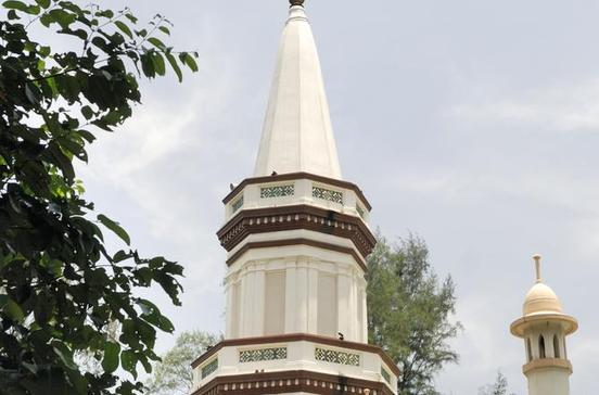 Noch attraktiver als die größere Sultansmoschee ist Singapurs älteste Moschee. Im Gebetsraum mit seinen glasierten Porzellankacheln treffen sich indisch-islamische, europäische und chinesische Elemente, die Kuppel ähnelt einer Zwiebel und das Minarett erinnert an einen Kirchturm. Es gilt wegen seiner Neigung um 6 Grad als „schiefer Turm“ Singapurs. Benannt ist die Moschee nach ihrer Stifterin, einer erfolgreichen Geschäftsfrau.