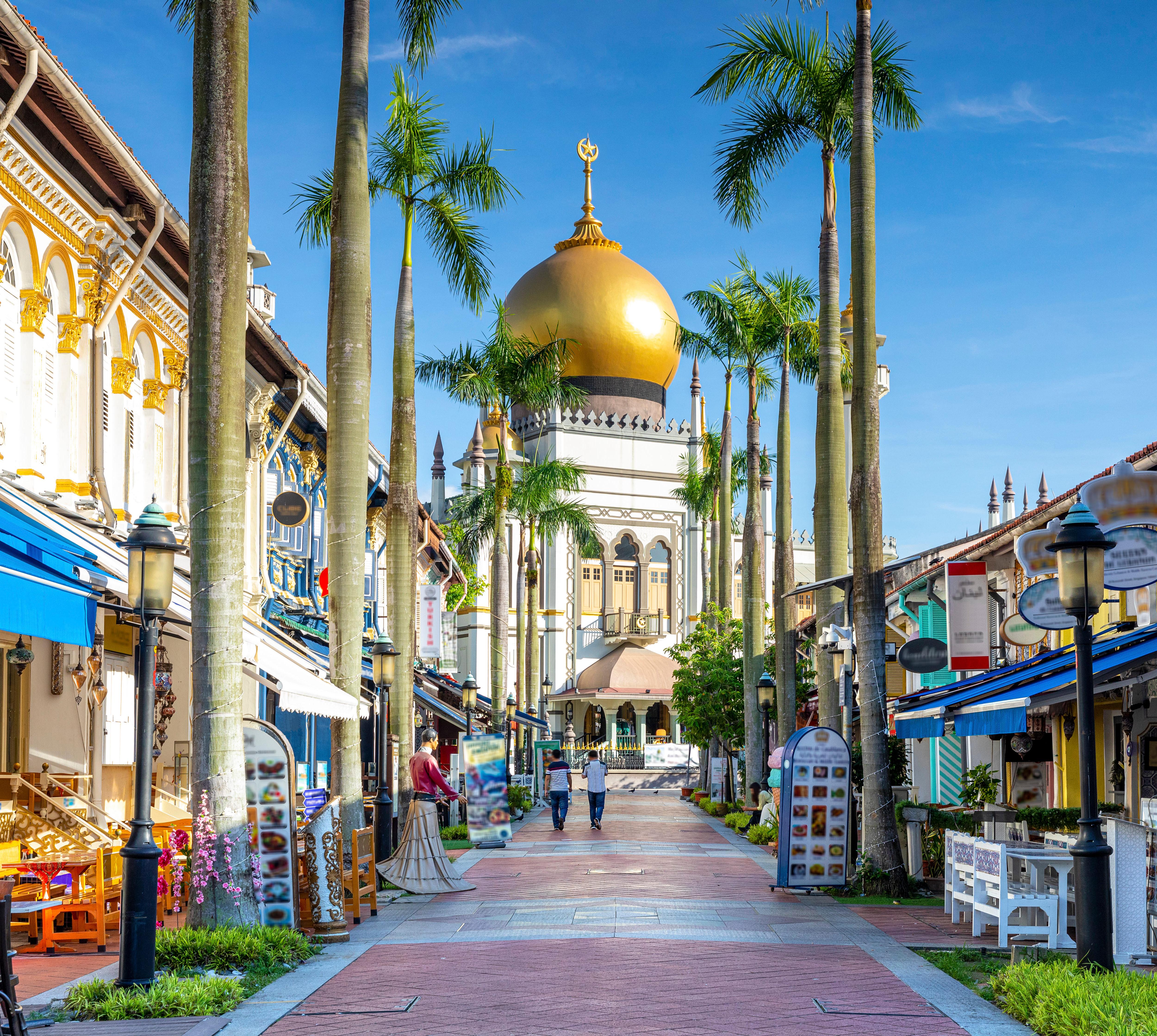 Die Araber gehörten zu den ersten Handelspartnern des alten Singapura. Die nach ihnen benannte Straße wurde zum Synonym für das malaiische Stadtviertel, das unübersehbar islamisch geprägt ist. Die goldene Kuppel der Sultan Mosque (Sultansmoschee) beherrscht das Gebiet zwischen Jalan Sultan und Rochor Road im Norden und Süden, zwischen Jalan Besar und Beach Road im Westen und Osten. Die Läden in den kleinen Straßen sind vollgestopft mit Leder- und Korbwaren, Parfümöl, Batik und Seide. Wenn du mit den Stoffhändlern der Arab Street handelst, solltest du schon 10 Prozent Rabatt herausholen können. Nachdem es aufgrund hoher Mietpreise zu langen Leerständen gekommen war, ist das Viertel, das auch Kampong Glam heißt, nun wieder belebt. Inzwischen entdeckt die immer buntere Szene Singapurs die Gassen und ihre attraktiven Nachtlokale.