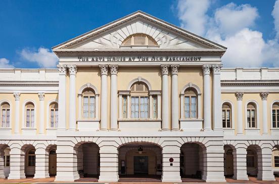 Das weiße Gebäude im Herzen der Stadt am Singapore River blickt auf eine wechselvolle Geschichte zurück: 1829 vom irischen Architekten George Coleman als Kaufmannshaus gebaut, wurde es zum Gericht umgewidmet. Dann zog das Parlament ein. Auch als Symbol für den angestrebten Wandel Singapurs zur Kunstmetropole ist es zu verstehen, dass das ehemalige Old Parliament House 2004 in "The Arts House" umgetauft und als Galerie und Veranstaltungszentrum mit Restaurant wieder eröffnet wurde. Zuvor war das Parlament des Stadtstaates einige 100 m weiter den Fluss hinauf in einen Neubau umgezogen.
