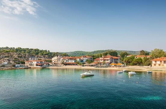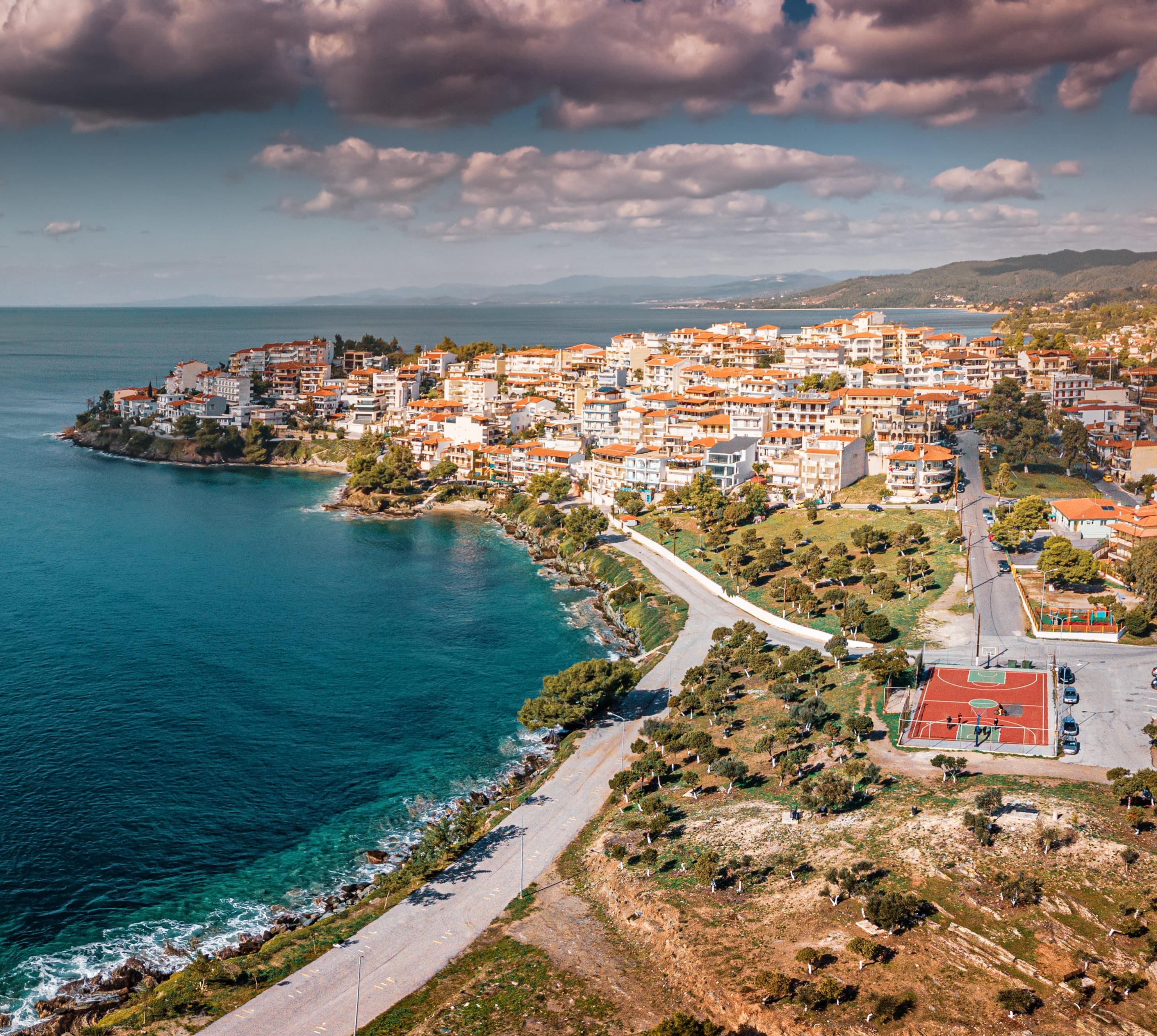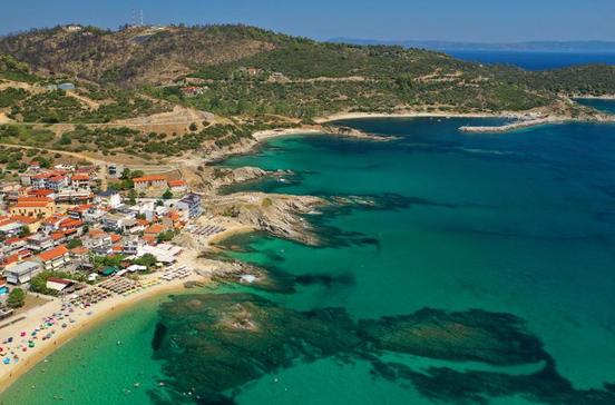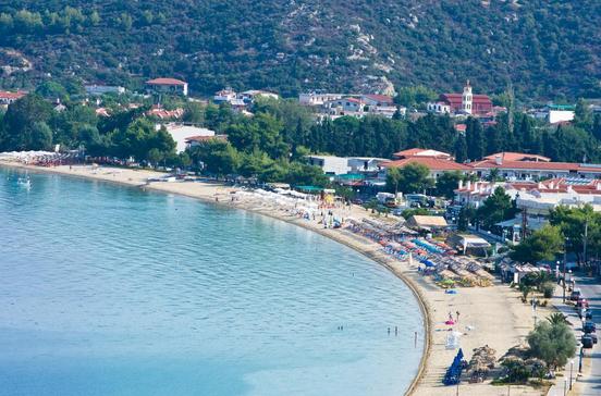 Der Weiler, in dem im Winter höchstens fünf Familien leben, kann sich einiger der schönsten Sandbuchten Griechenlands rühmen, die man über Stichstraßen erreicht. Viele Thessalonicher haben in dieser Gegend ihre Ferienwohnungen, größere Hotels gibt es (noch) nicht.