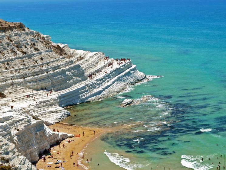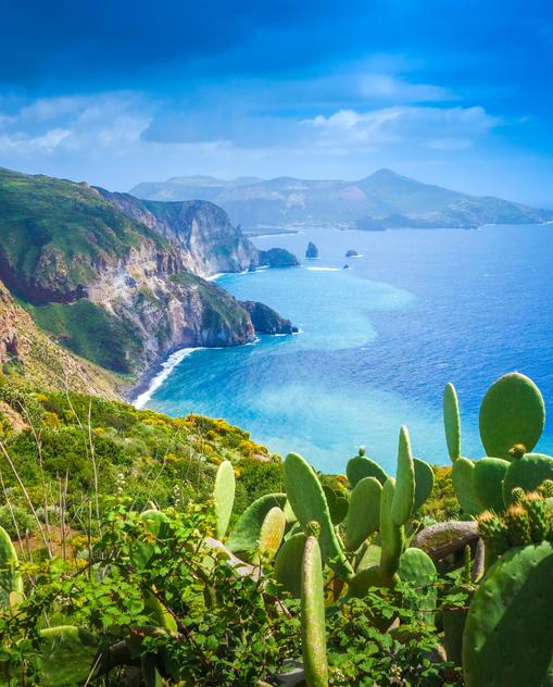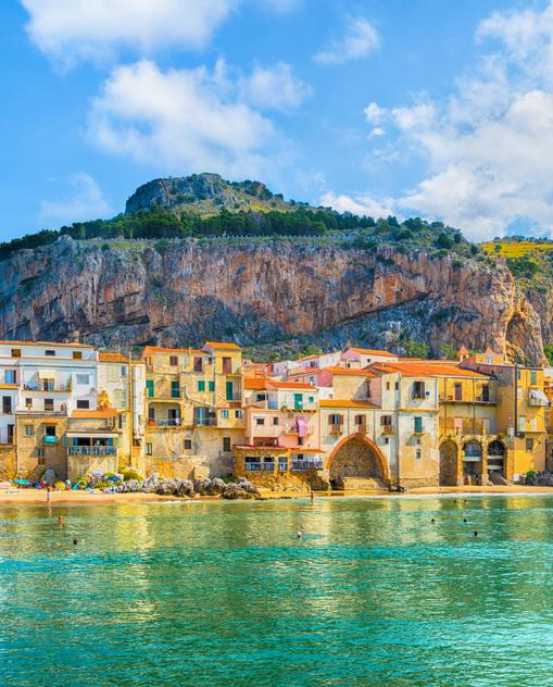 Die Vegetation mit violetten Kaskaden von Bougainvilleen, orangen Opuntienfrüchten, silbergrauen Oliven und knorrigen Johannisbrotbäumen in den Küstenregionen kontrastiert mit dem schwefelreichen, menschenleer wirkenden Landesinneren: wogende Kornfelder, verwachsene Wanderpfade und Schafherden in der Macchia. Üppig ist auch die Vielfalt der Strände: vom feinen Sand der Nordküste, der das Fischerstädtchen Cefalù rahmt, bis zum Lavagrus der Äolischen Insel Lipari. Blaue Grotten zu Füßen Taorminas oder die Vulkanklamm der Gola d’Alcantara: Sizilien ist das sinnenfreudige Konzentrat des Südens!