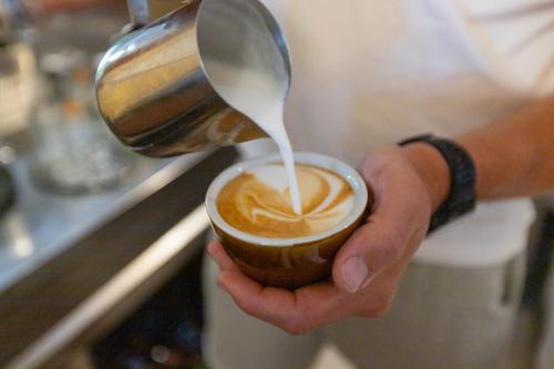 Die Wohneinheiten haben eine voll ausgestattete Küche mit einem Kühlschrank, einer Kaffeemaschine und einer Mikrowelle.