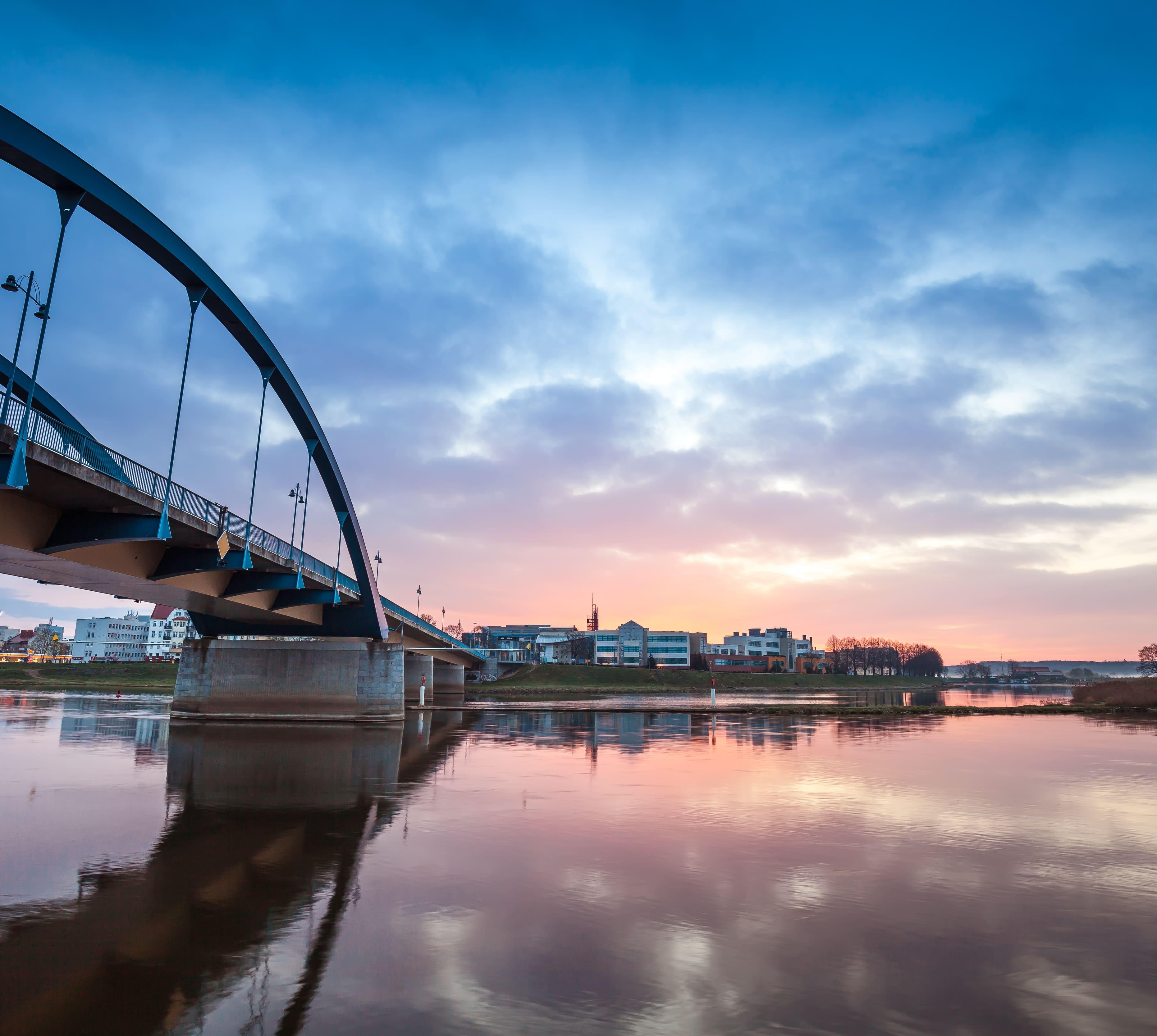 Drei Brücken führen in der Grenzstadt über die Oder nach Polen, die ihren Besuchern ganz unterschiedliche Gesichter zeigt: DDR-Plattenbauten stehen gegen wunderschöne norddeutsche Backsteingotik wie das größte erhaltene mittelalterliche Rathaus Deutschlands und die Hallenkirche Sankt Marien.