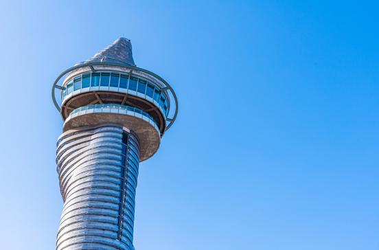 Vom Café in der 15.Etage bietet sich ein phantastischer Rundumblick auf Stadt, Berge und Meer. Der 73 Meter hohe Turm wurde 1999 anlässlich der Gangwon International Tourism Expo errichtet.