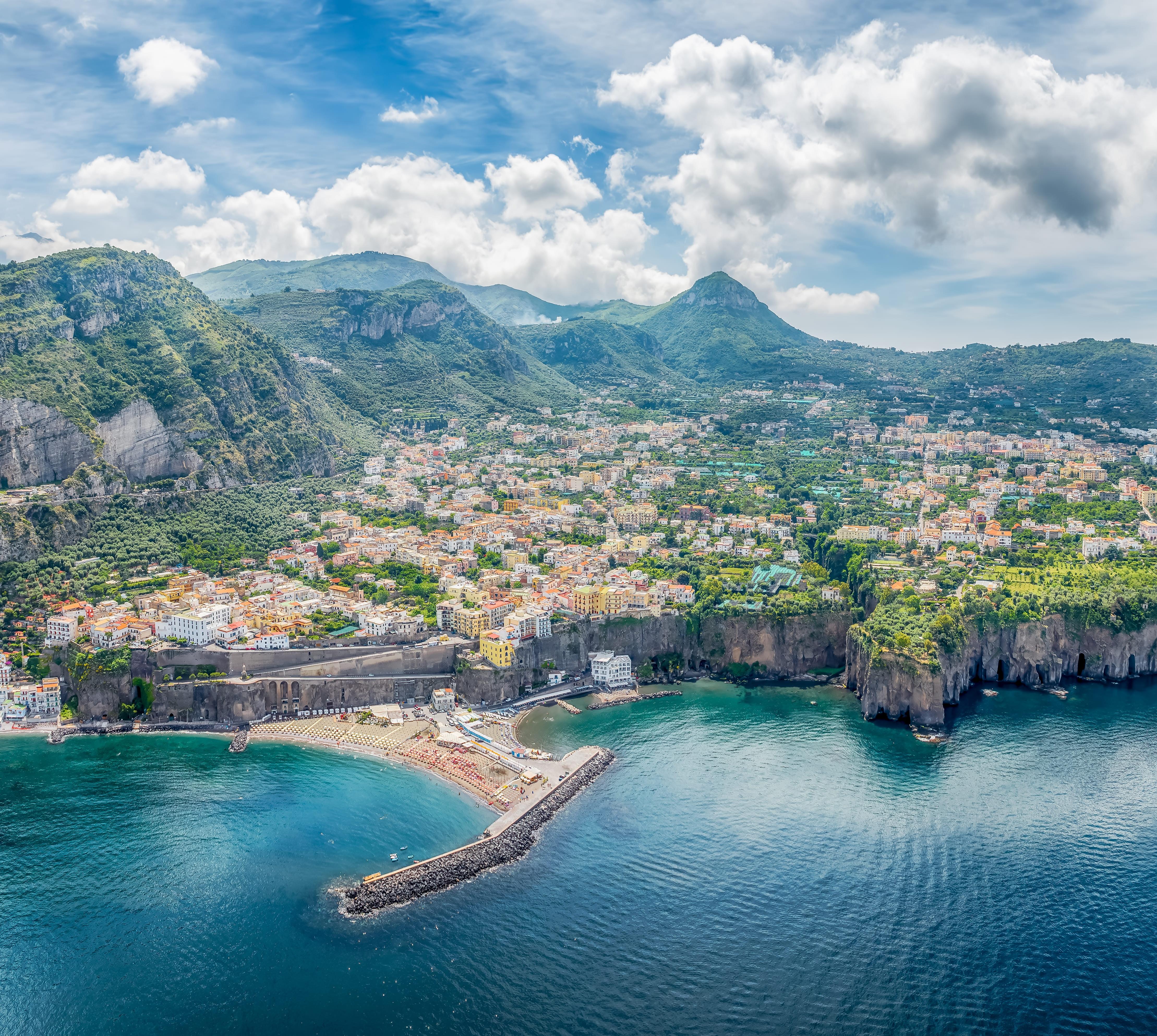 Sorrent (17 000 Ew.) und die dazugehörige Halbinsel wurden dank ihrer phantastischen Lage auf einem mächtigen Tuffplateau hoch über dem Golf von Neapel im 18.Jh. von den Engländern entdeckt. Die damals gebauten Prachthotels, oft in herrlichen Parks, können heute noch begeistern. Zusammen mit den majestätisch anmutenden Sommervillen machen sie den alten Zauber Sorrents aus. Mit der Zeit sind viele weitere Hotels hinzugekommen, auf dem Plateau findet sich sogar Platz für Campingplätze, aber auch für Zersiedelung und notorisches Verkehrschaos. Zu Sorrent gehört die Tradition der Holzintarsienkunst. Am Wochenende lockt die Ausgehszene mit Discos (auch am Strand) und Weinbars, viele kommen aus Neapel und von der Amalfiküste.