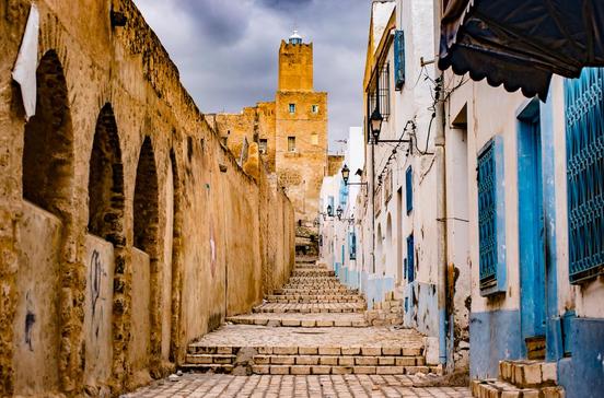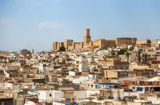 Der Wehrbau war früher eine Art muslimisches Kloster für Kriegermönche. Eine Kette solcher Ribats schützte die tunesische Küste und diente den Menschen im Angriffsfall als Unterschlupf. Dieses Ribat wurde im Jahr 821 auf nahezu quadratischem Grundriss mit drei runden Ecktürmen errichtet. Der vierte, über 27 m hohe Turm kam wohl erst später hinzu und bietet heute einen herrlichen Panoramablick über die Medina. Das Zugangstor in der Südmauer schmückt ein gotisch anmutendes Kreuzgratgewölbe. Ansonsten ist auch dieser faszinierende Bau völlig schlicht: Den Innenhof umgeben die Zellen der Kriegermönche, im ersten Stock befindet sich ein einfacher Gebetsraum.