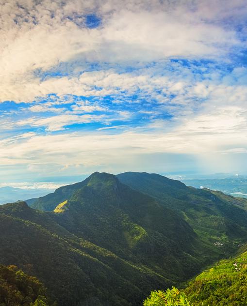 Doch damit nicht genug. In den vielen üppiggrünen Gärten haben Kardamomsträucher, Pfefferranken und Zimtbäume Sri Lankas Ruf als Gewürzinsel begründet, während Palmhaine, Reisfelder und Kautschukplantagen noch heute eine wichtige Rolle in der Landwirtschaft spielen. „Wir finden hier das Paradies, die Fülle und Üppigkeit aller natürlichen Gaben“, notierte euphorisch Hermann Hesse 1911 bei seinem Spaziergang in den Bergen. Wie der berühmte Dichter des „Siddharta“ kommen auch heute noch Reisende bei ihrer Fahrt durch das Hochland ins Schwärmen: Teeplantagen, die sich wie ein grüner Teppich über die Berghänge legen, urige Bergorte wie Ella und Haputale, von denen sich herrliche Panoramablicke ergeben, erfrischende Wasserfälle wie die Dunhinda Falls oder wilde Flüsse wie in Kitulgala. Doch nicht nur landschaftlich sind die Berge ein Kontrastprogramm zur Küste, sondern auch klimatisch.