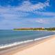 Der wunderschöne Strand Kallady Beach ist fast menschenleer und ebenso baumlos: Nimm also einen Sonnenschutz mit.