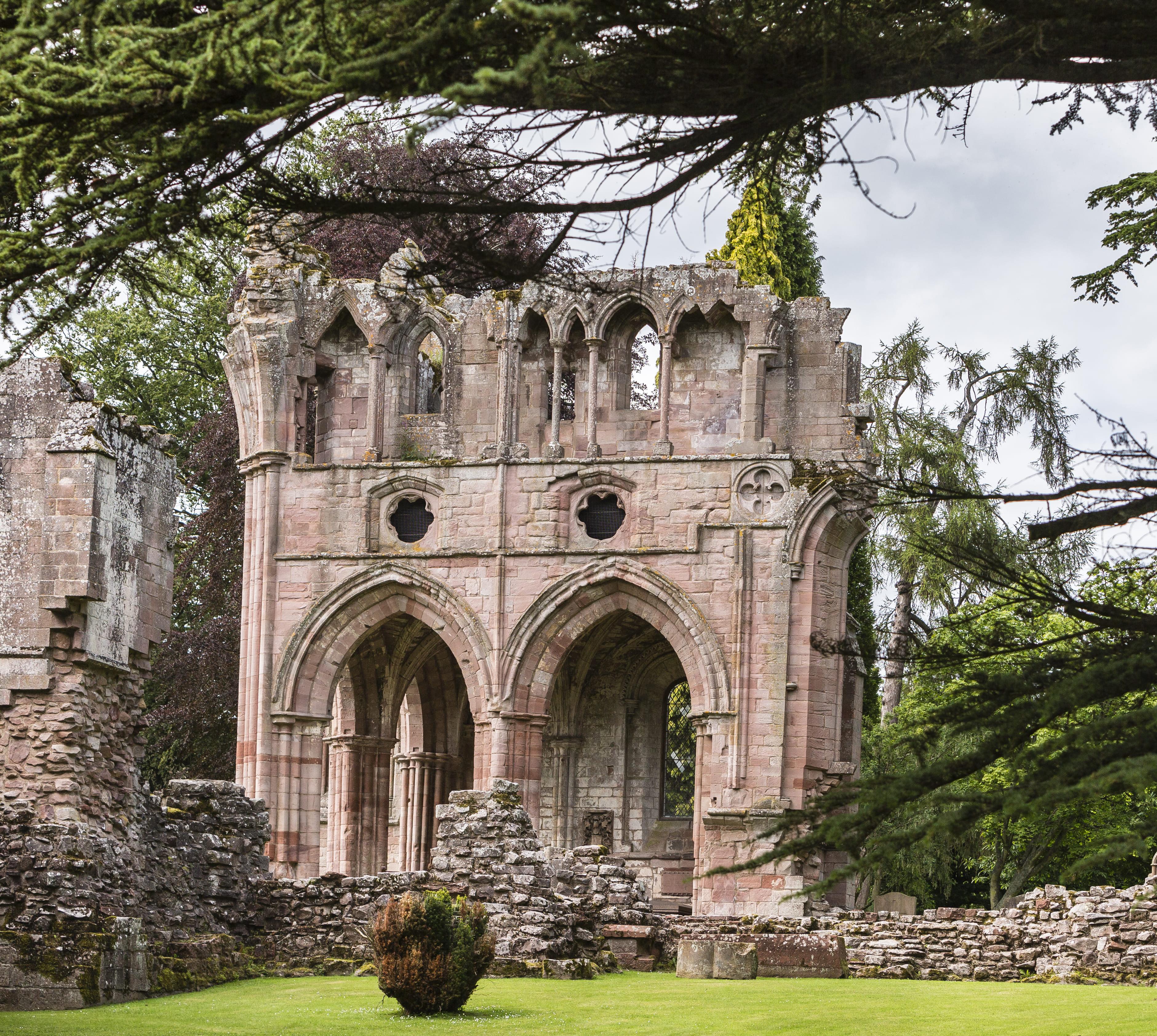Hier ruht Sir Walter seit 1832 unter mächtigen Zedern. Die romantischste der "Borders Abbeys" ist eine frühgotische Prämonstratenserabtei von 1150 und liegt am Fluss Tweed.