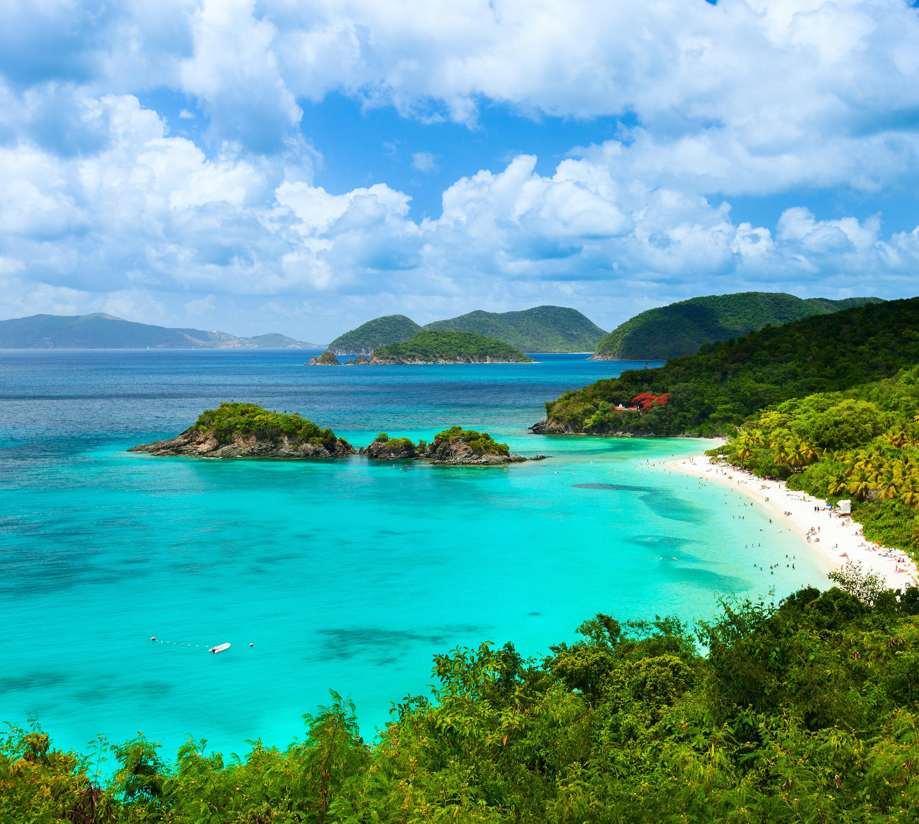 Die östlichste der US Virgin Islands ging in den 1950er-Jahren zur Hälfte in den Besitz der Rockefellers über. Die Magnatenfamilie spendete den Großteil für den Virgin Islands National Park, der zwei Drittel der 50 km² großen Insel bedeckt. Mehrmals die Woche kannst du dich hier von einem Parkranger auf dem Reef Bay Hike führen lassen und dabei die Vegetationszonen kennenlernen, eine Zuckermühle und präkolumbische Felsbilder besichtigen. Vom höchsten Berg auf St. John, dem Bordeaux Mountain (389 m) hast du einen tollen Blick. Eine Routenkarte gibt’s im Visitors’ Centre am Hafen in der kleinen Hauptstadt Cruz Bay, außerdem Läden (Wharfside Village und Mongoose Junction) und gute Restaurants wie das Lime Inn. Die köstliche conch chowder (Muschelsuppe) in Miss Lucy’s Restaurant lohnt den Weg nach Salt Pond. Die schönsten Strände sind Trunk und Cinnamon Bay.