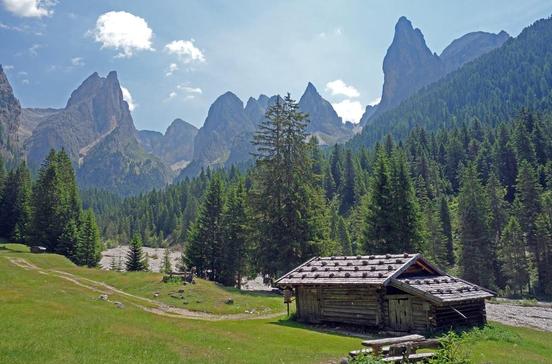 Bei Sankt Zyprian zweigt das romantische Tschamintal ab, das sich durch den südlichen Teil des Naturparks Schlern-Rosengarten zieht. Vom Parkplatz bei Weißlahnbad sind es wenige Minuten zum Naturparkhaus, das in einem alten wasserbetriebenen Sägewerk untergebracht ist und neben der Dolomitenlandschaft die Forstwirtschaft dokumentiert (regelmäßige Vorführungen des Sägewerks). Von hier geht der Fußweg durch Wald, über Wiesen und steile Kare bis zur Grasleiten-Hütte (2134 m). Gehzeit hin und zurück 5-6 Stunden