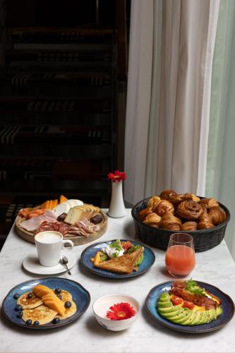 Jeden Morgen wird ein reichhaltiges Frühstücksbuffet mit Croissants und warmen Speisen wie Speck und Eiern serviert. Die Crossroads Bar serviert internationale Gerichte und leichte Snacks im Innenbereich und auf der Terrasse.
