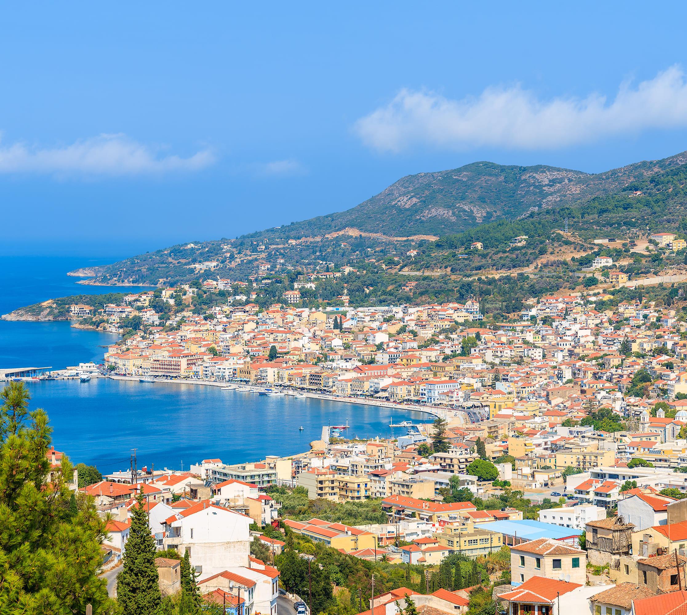 Vathý, auch Sámos-Stadt (8250 Ew.) genannt, ist nicht gerade Rio, aber wächst so langsam aber sicher in seine Rolle als Inselhauptstadt hinein. Du kannst an der langen Uferpromenade entlangspazieren oder in der autofreien Fußgängerzone shoppen.