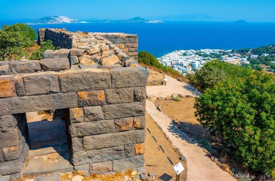 Du musst nicht weit aus der Stadt fahren, um wieder das zu finden, was du auf der Insel wahrscheinlich gesucht hast: Stille und Ruhe. Die Vlamarí-Hochebene ist nur gut 3 km von Vathý entfernt. Auf einmal wanderst du auf alten, byzantinischen Wegen, vorbei an Zypressen und Eukalyptusbäumen. Besuch das Kloster Agía Zóni. Hier kommst du dir vor wie in einer Festung. Und im Innenhof kannst du dich im Schatten ausruhen. Wirf auch einen Blick in die Klosterkirche aus dem 18.Jh. Die Ikonostase trägt schöne figürliche Holzschnitzereien. Über der Hochebene ragt ein Berg auf, auf dem in 300 m Höhe das sagenumwobene Nonnenkloster Zoodóchos Pigí thront. Im Kloster lässt du das Handy besser in der Tasche, denn es herrscht striktes Fotografierverbot! Aber wenn du dich auf sakrale Musik einlassen willst, dann nimm an einem Gottesdienst in der 1786 erbauten, kleinen Kirche teil. Auch wenn das sonst nicht so dein Fall ist – der Engelsgesang der Klosterbewohnerinnen lässt niemanden kalt. Für die Anfahrt über die sehr schmale Straße wirst du mit grandiosen Ausblicken auf die von üppigem Grün gesäumten Strandbuchten Mourtiá (auch mit dem Auto erreichbar), Mikrí Lákka und Megáli Lákka belohnt.
