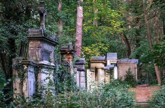 Außerhalb Berlins, am Südwestrand der Stadt, wegen der vielen Mausoleen und der nordischen Holzkirche sehr sehenswert.