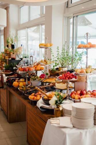 Jeden Morgen wird ein reichhaltiges Frühstücksbuffet mit regionalen, hausgemachten Spezialitäten serviert. Im Sommer können Sie Ihr Frühstück auch auf der Dachterrasse genießen.
