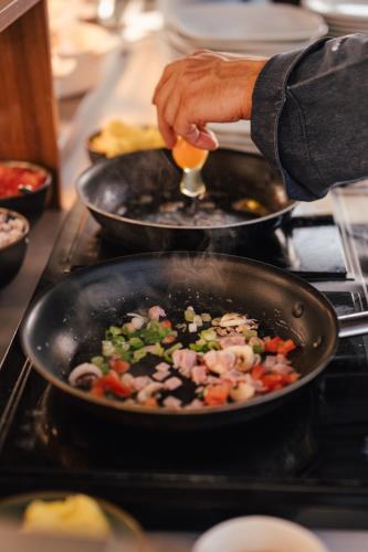 Beim Frühstück werden als Buffet angebotene, kontinentale oder vegetarische Optionen angeboten.