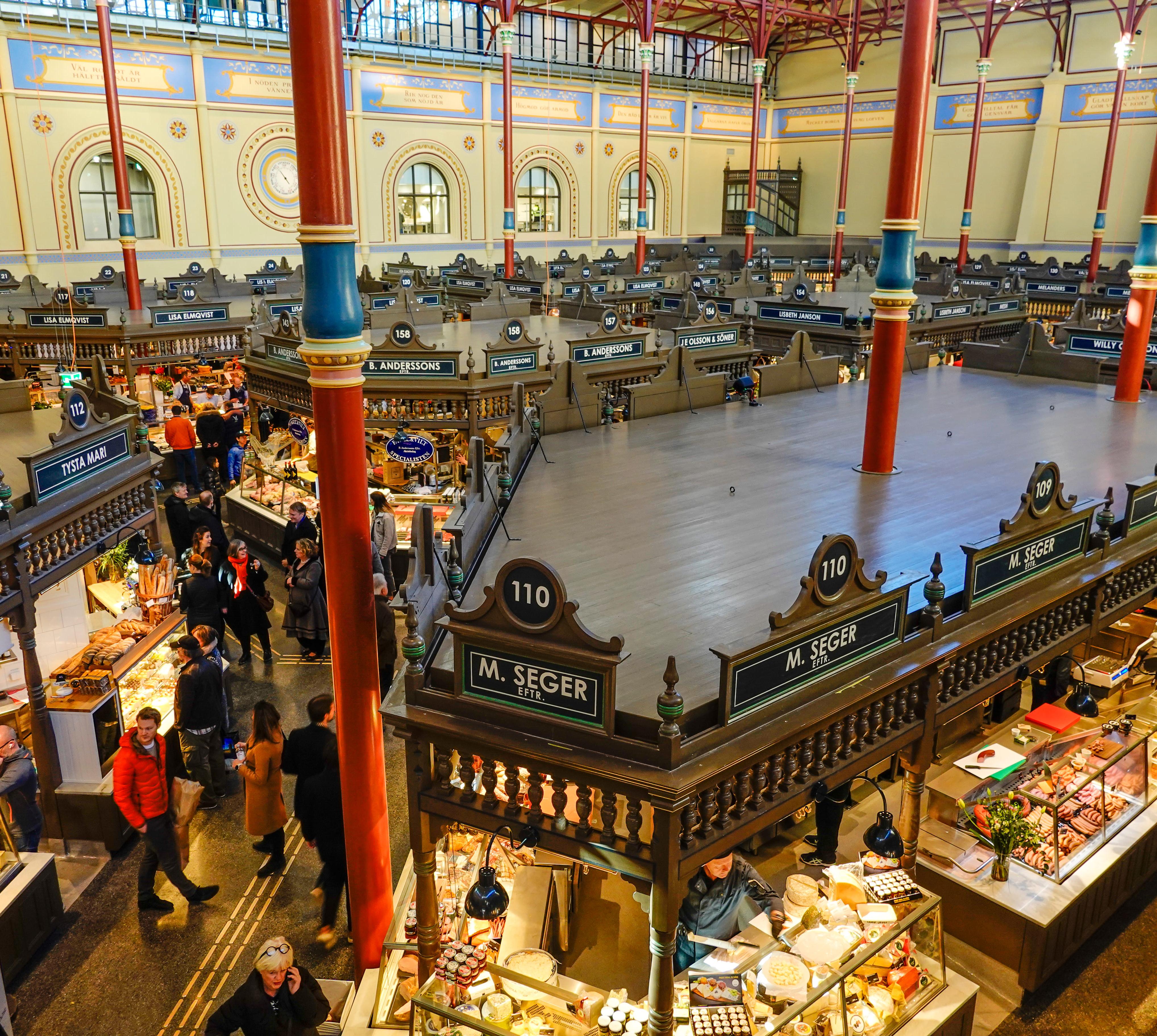 Die Architekten Isak Gustaf Clason (1856-1930) und Kasper Salin (1856-1919) ließen sich beim Bau dieser rund 3000 m2 großen Markthalle von Backsteinarchitektur und neuartigen Gusseisenkonstruktionen inspirieren, die sie auf Reisen nach Deutschland, Frankreich und Italien gesehen hatten. In Anwesenheit König Oscars I. wurde die Halle, heute ein Spezialitätentempel, 1888 eröffnet.