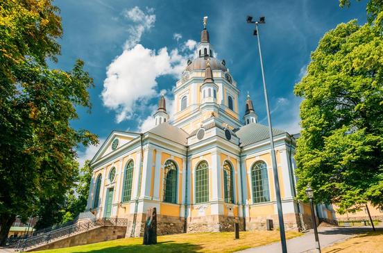 Jean de la Vallée entwarf diese Kirche mit klassizistischer Fassade, die 1695 vollendet war. Zwei Mal brannte sie ab (1723 und 1990). Nach dem letzten Brand achtete man auf einen strengen, originalgetreuen Wiederaufbau, bei dem auch die alten Bautechniken angewendet wurden. Kosten: fast 300 Mio. Kronen, die z.T. aus Spendengeldern finanziert wurden. 1995 wurde die neue Kirche geweiht. Auf dem Friedhof liegt die frühere schwedische Außenministerin Anna Lindh begraben, die 2003 bei einem Attentat im Kaufhaus NK ums Leben kam.