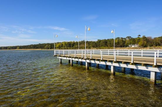 Das nach der Meereskönigin aus einem alten baltischen Märchen benannte Dorf ist jung: Erst 1928 gegründet, sollte es ein Seebad für die polnische Prominenz werden. Der Platz dafür war gut gewählt: Kiefernwald und Dünen schirmen den Ort gegen raue Seewinde ab. Für sein mildes Klima ist Jurata denn auch seit jeher in den Kreisen der Oberen Zehntausend bekannt. Zum Leute gucken lohnt sich ein Bummel über die Hauptstraße von Jurata, den auf der 320 m langen Seebrücke endenden Boulevard Międmorze.