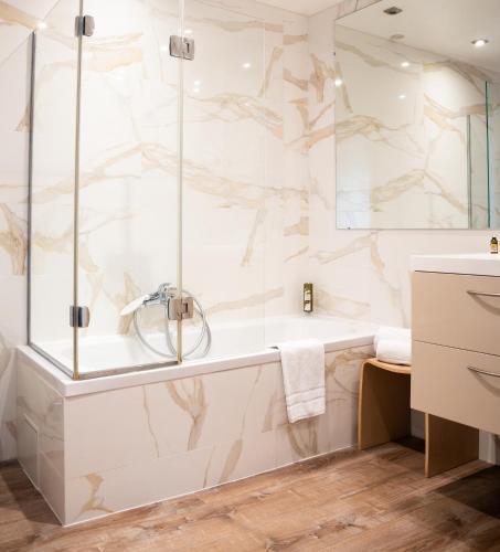 Die Zimmer sind mit einem eigenen Bad mit einem WC und einer Badewanne oder Dusche ausgestattet. Ein Flachbild-TV und eine Nespresso-Kaffeemaschine sind auch vorhanden.