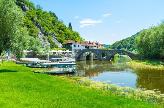 Der alte Weg von Cetinje nach Podgorica bietet herrliche Ausblicke auf den Skutarisee und den Fluss, der ebenfalls Rijeka Crnojevića heißt. Er schlängelt sich wunderschön grün in den See hinein. Der kleine Ort macht mit seinen Bauruinen, die einfach in der Gegend herumstehen, auf den ersten Blick einen verrückten Eindruck. Aber lass dich auf keinen Fall abschrecken! Der winzige Ortskern mit seiner alten, kleinen und wahnsinnig steilen Steinbrücke ist sehr charmant. Gut essen lässt es sich im Restaurant Nowy Most, das mit leckeren Fischplatten und besonders freundlicher Bewirtung punktet.