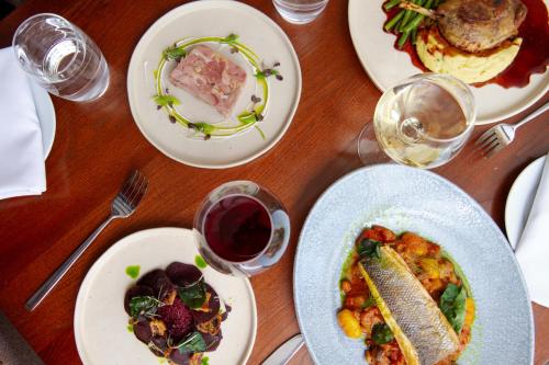 Die private Eigentümerfamilie und die erfahrenen Mitarbeiter ermuntern Sie, die herzliche Gastfreundschaft und die ausgezeichneten, mit regionalen Erzeugnissen zubereiteten Speisen zu genießen. Die Gerichte werden in einem Restaurant zubereitet und aufgetragen, das mit einer AA-Rosette ausgezeichnet wurde. Das Restaurant bietet Ihnen einen direkten Zugang zum Garten, in dem Sie sich an einem warmen Sommerabend Getränke und Appetithappen munden lassen können. Im Winter erfreuen Sie sich in der gemütlichen Lounge oder Bar am Komfort und der Wärme des Kaminfeuers.