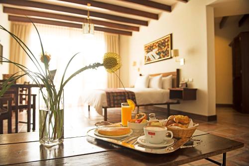 Das Hotel Corregidor by Cassana bietet ein Frühstücksbuffet mit einer Auswahl an Säften, Brot aus der Region, frischem Obst, Kaffee, Milch, Müsli und Eiern auf Bestellung.