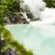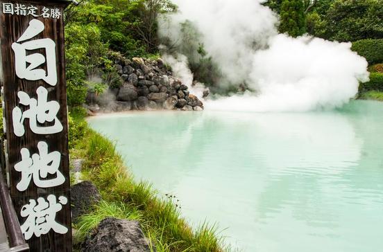 Die Einheimischen nennen die Quellen wegen der extremen Temperaturen „Höllen“ und nutzen das Wasser zum Heizen oder Kochen. Mehr als 1 Mio. Hektoliter werden täglich abgepumpt. Jede Quelle ist etwas Besonderes: Umijigoku, die „Seehölle“, hat ein intensiv blaues Wasser mit Zusätzen aus Schwefel und Eisen und ist 98 Grad heiß. Diese Quelle wurde vor 1200 Jahren entdeckt. Chi-no-ike-jigoku, die „Bluthölle“, ist tiefrot gefärbt und aus dem kleinen See steigen gewaltige Dampfwolken auf. In der Kamado-jigoku, der „Ofenhölle“, schwappen heiße Schlammquellen. Yama-jigoku, die „Berghölle“, wirkt wie ein Fels, den stets neu aufwallende Nebelschwaden einhüllen. Und Tatsumakijigoku schließlich, die „Zyklonhölle“, ist ein Geysir. Er speit alle 30 Minuten heißes Wasser in den Himmel. Die Fontäne kannst du dann für drei Minuten bestaunen. Sechs der neun berühmtesten heißen Quellen von Beppu liegen fußläufig beieinander, die anderen etwa 1 km außerhalb von Kannawa. Erwirb den Jigoku Meguri Circuit Pass, mit dem du alle „Höllen“ betreten können.