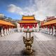 Das rote Eingangstor ist ein typisches Beispiel für die Architektur der chinesischen Kaiser aus der Ming-Dynastie. Die farbenprächtige Pilgerstätte beherbergt das einzige Konfuzius-Mausoleum außerhalb Chinas. Dort werden 20 Sammelwerke, eingeritzt in Marmor, aufbewahrt, die in 500 Sektionen und 16 000 Schriftzeichen die Lehren des großen chinesischen Philosophen widerspiegeln. Aus dem gigantischen Kochtopf, der im Tempelgrund steht, sollen während der dramatischen Hungersnot 1652 täglich 3000 Bedürftige mit Hirsebrei verpflegt worden sein.