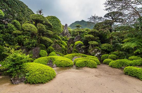 Das Geschlecht der Shimazu hinterließ der Stadt ihre schönste Attraktion: den malerisch in einer Bucht gelegenen Schlosspark mit Pflaumenbäumen und Bambushainen, in dem auch die fürstliche Residenz liegt. An einem kleinen Fluss wurden in noblen Zeiten rauschende Lyrikfeste gefeiert, bei denen jeder Teilnehmer schnell ein Gedicht verfassen musste, bevor das nächste Sake-Fass flussabwärts kam. Der Park ist leider nicht so gepflegt wie Tourismusbroschüren versprechen.