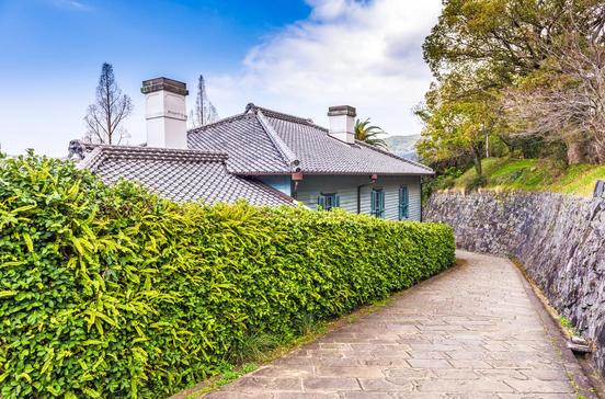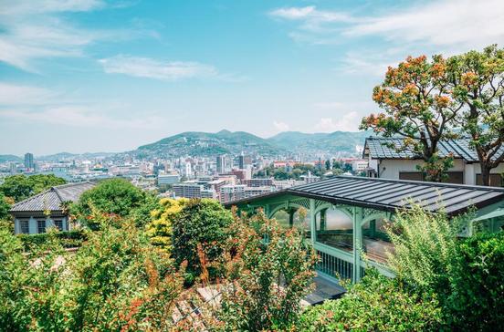 Schon von Weitem hört man das berühmte Arienmotiv der Madame Butterfly - aus dem Mund der japanischen Opernsängerin Miura Tamaki (1884-1946), der man hier ein lebensgroßes Denkmal aus Bronze errichtet hat. Ansonsten ist alles Legende. Thomas Glover, der um 1900 und bis zu seinem Tod 1911 auf diesem grünen Hügel über der Hafeneinfahrt als bekanntester Ausländer von Nagasaki residierte, war Schotte und nicht, wie die männliche Hauptfigur in Giacomo Puccinis Oper „Madama Butterfly“, ein Amerikaner. Noch heute ist die Atmosphäre der ersten westlichen Villen in Japan zu spüren. Das 1863 gebaute Glover Mansion, mitten in einem gepflegten Garten, bietet einen traumhaften Blick auf den Naturhafen.