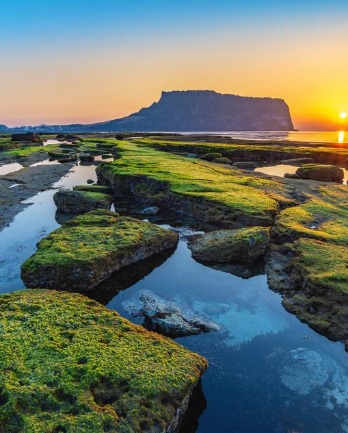 Wandern, Baden, Flitterwochen – dank des subtropischen Klimas ist Jeju rund ums Jahr ein gefragtes Urlaubsziel. Und dennoch überrascht die Insel mit vielen Details. So leben auf Jeju Island noch immer rund zweitausend Haenyeo, Perlen- und Muscheltaucherinnen, die ihren Fang per Handarbeit ohne Sauerstoffflaschen aus der Tiefe holen. Und wer hätte gedacht, dass man im Inneren der Insel noch stundenlang einsam wandern kann? Genau diese Mischung aus Naturidylle und Genuss ist es auch, die Jeju zur koreanischen Flitterwochendestination schlechthin macht. Nicht zuletzt locken auch die Strände der Insel, die als die schönsten Koreas gelten.