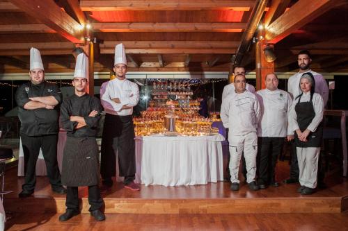 Im Hauptrestaurant Thalassa werden täglich Frühstücks-, Mittags- und Abendbuffets serviert. Mediterrane Köstlichkeiten werden im À-la-carte-Restaurant Aurora angeboten. Mitternachtssnacks und regional inspirierte alkoholische Getränke werden ebenfalls serviert. Auf dem Gelände gibt es auch eine Disco, die zweimal pro Woche geöffnet ist.